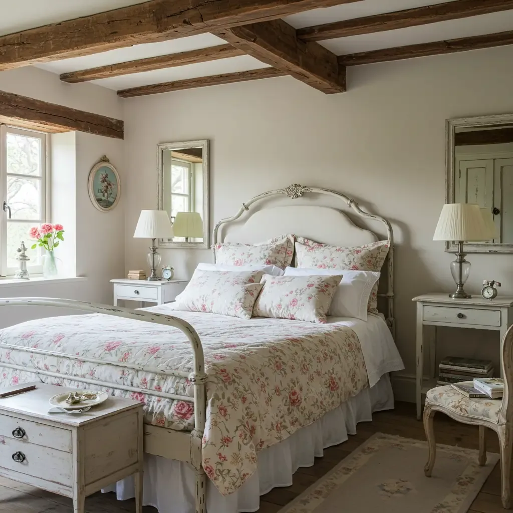 I transformed my bedroom with just a white linen duvet, some lavender in a vintage pitcher, and a distressed nightstand I found at a flea market. The key is layering soft textures and choosing pieces that look like they have stories to tell.
