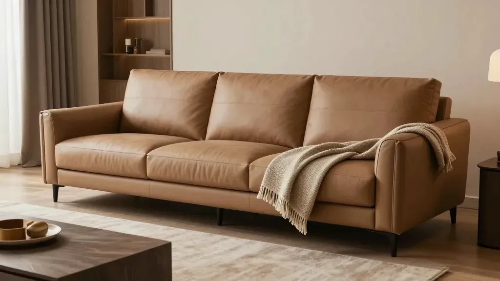 Pair with a couple of chic throw blankets and a curated bench or coffee table. Benefits: clicks with any accessory, lasts years, and ages beautifully.