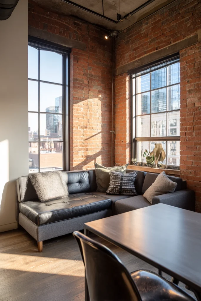 This space is perfect for those who appreciate a modern, urban vibe while still wanting a cozy atmosphere.