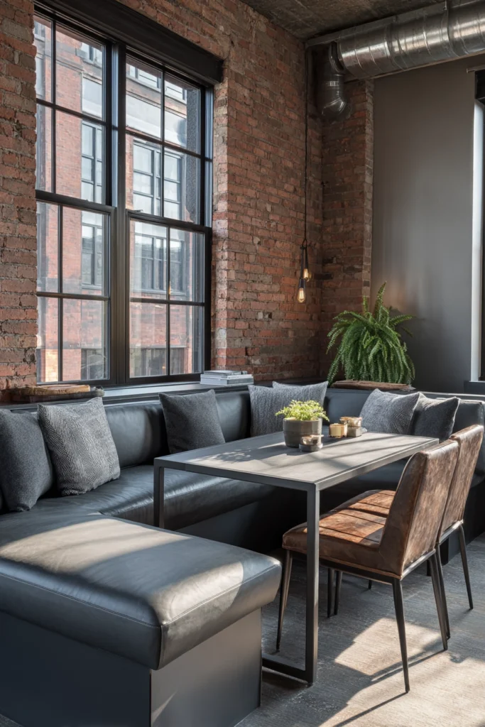 • Incorporate industrial materials such as metal and wood for a cohesive look.