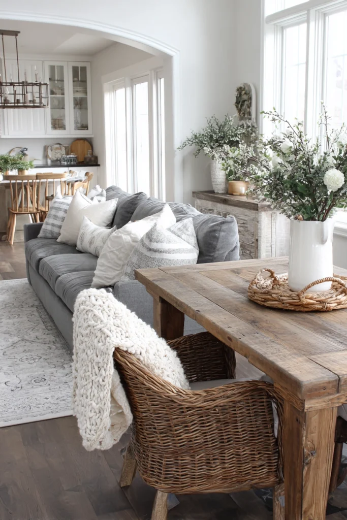 2. Elegant Modern Farmhouse Living Room with Dining Area