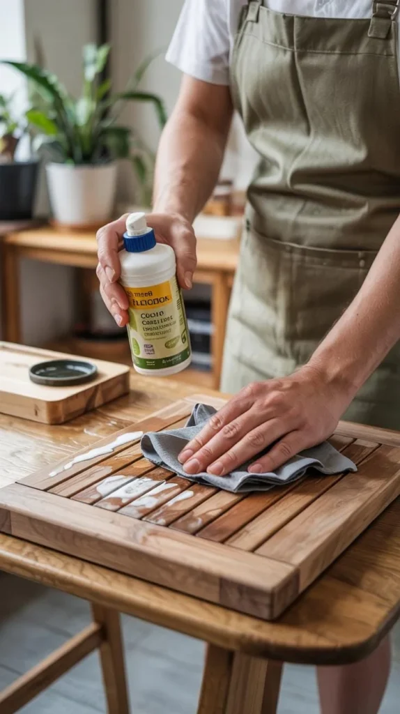 For bamboo, use a soft brush or cloth to dust regularly. Avoid soaking bamboo in water; instead, wipe it gently with a damp cloth. Apply natural oils like tung or linseed oil every few months. These oils protect bamboo from drying out and cracking.