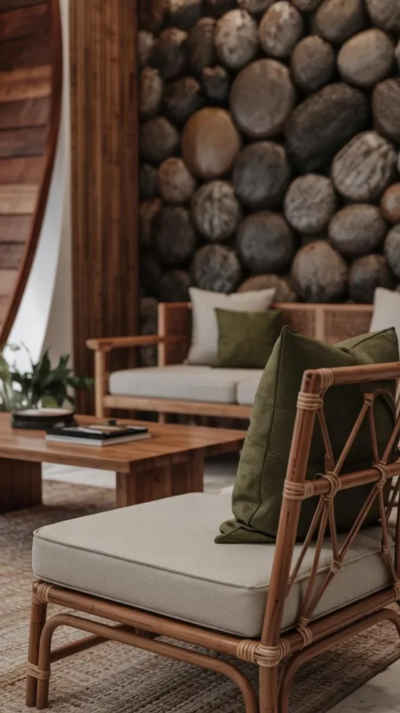 Using neutral walls allows your natural materials to stand out. If your furniture is dark wood, choose lighter cushions or rugs with subtle patterns to soften the look.
