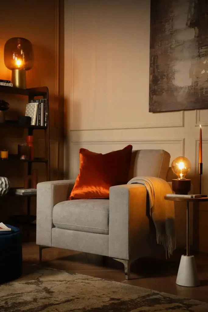 I’m seeing a real rise in the idea of breaking up the living room into zones. Rather than one big seating area facing a TV, the 2026 living room is full of small moments characterised by a reading chair by the window or a floor lamp tucked into a quiet corner.