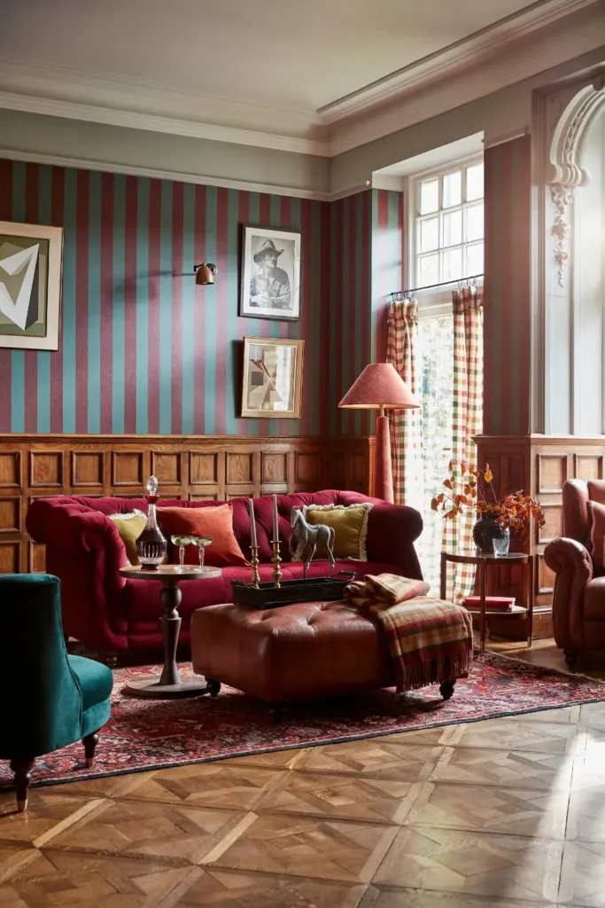 One of the more surprising trends for 2026 is a renewed focus on ceilings and floors as design features. Whether it’s a painted ceiling, panelled beams or patterned parquet flooring, the message is that every surface counts.