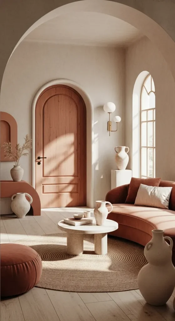 Pro Tip: Add an arched mirror to your entryway or opt for a curved sofa. Even rounded decor items like vases or lamps can introduce this trend subtly.